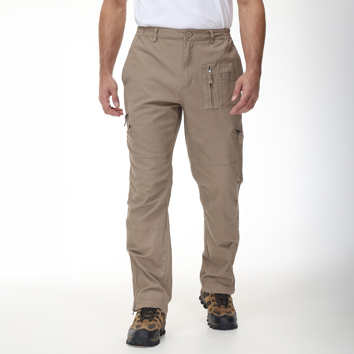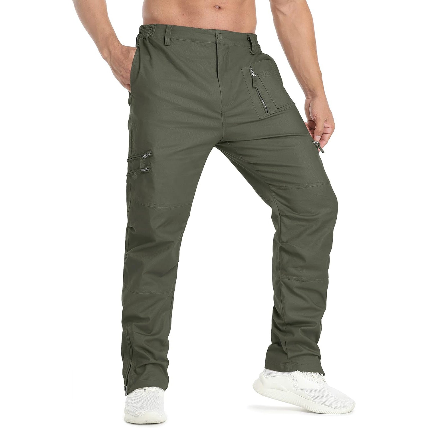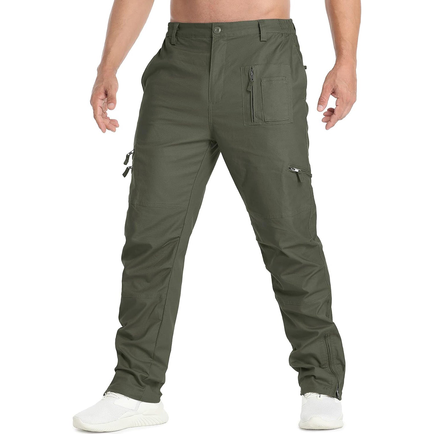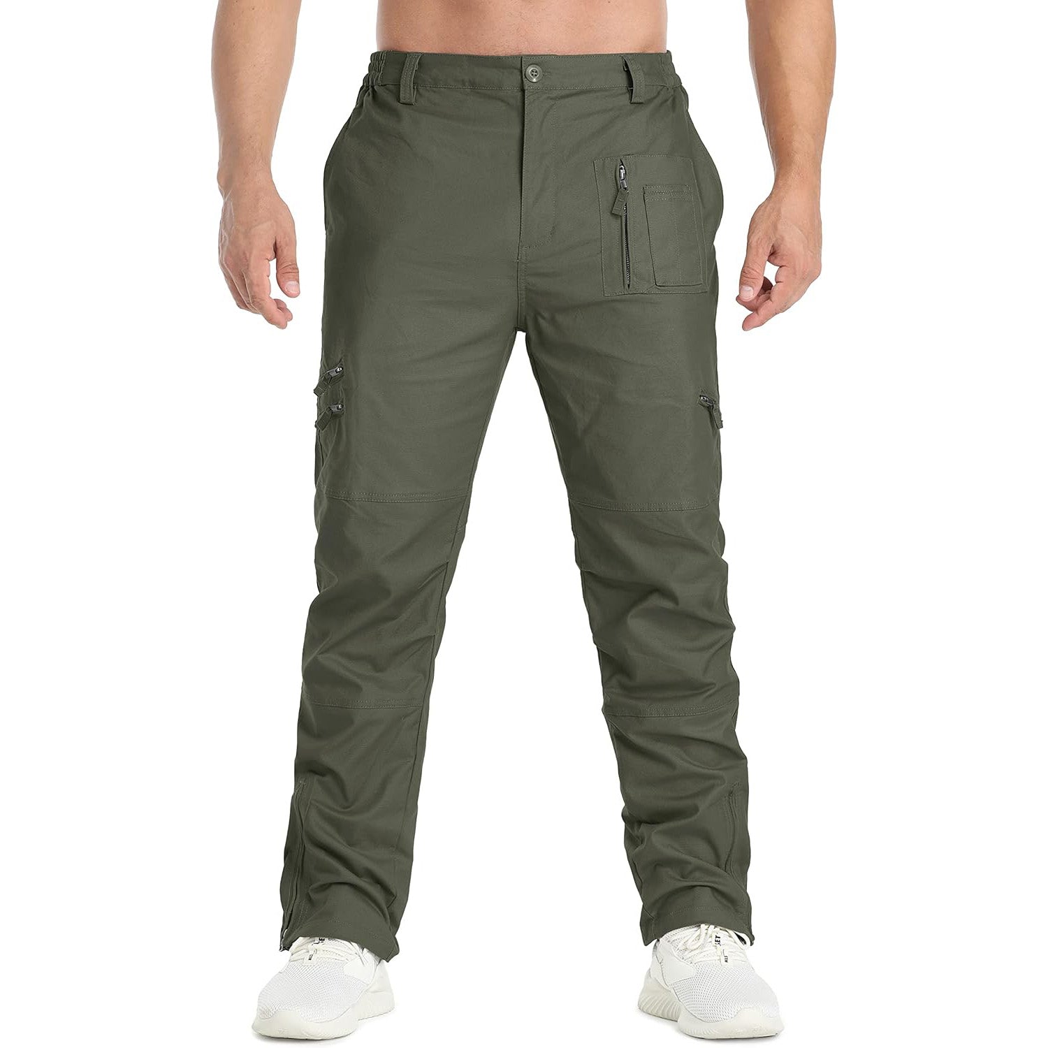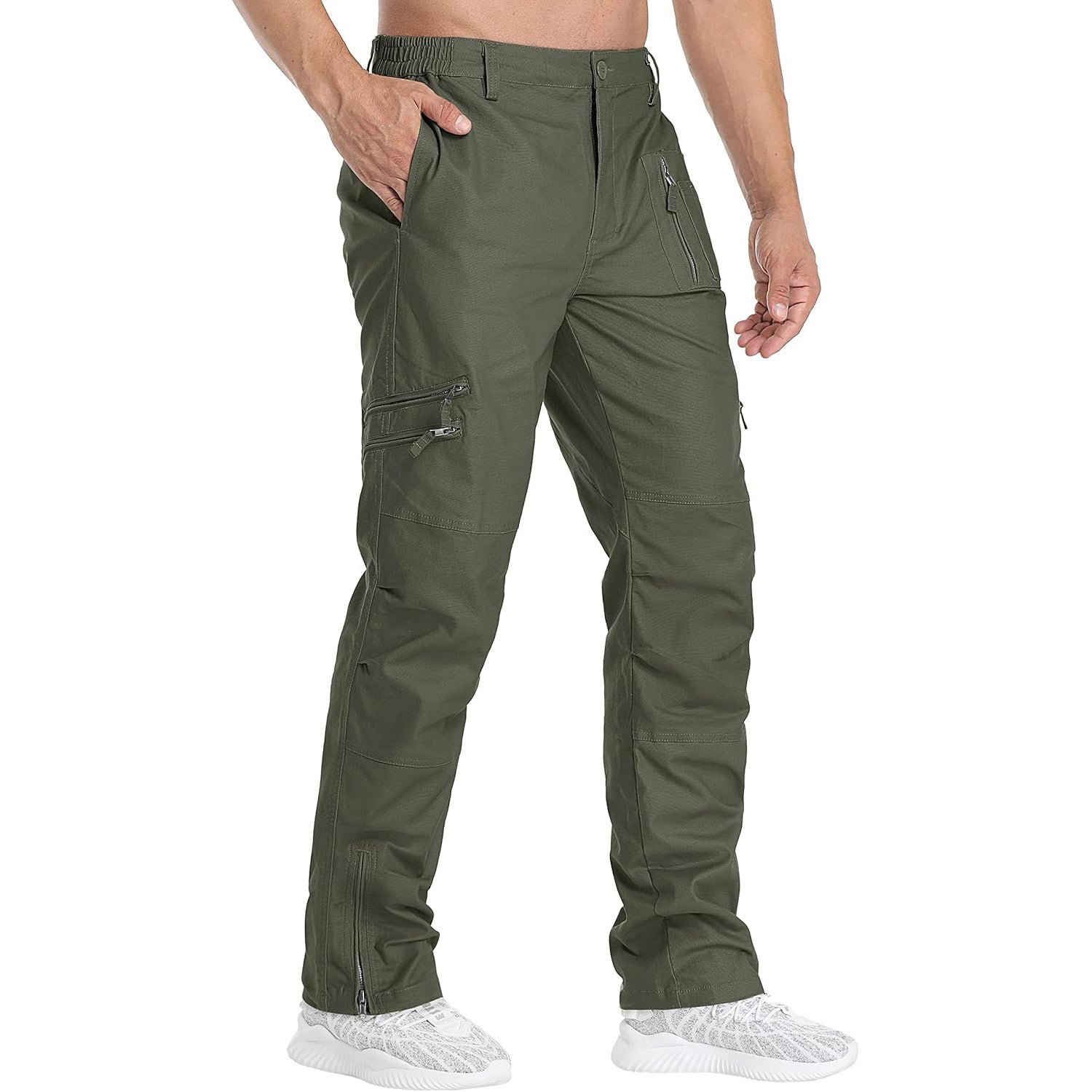 Style: The tactical pants with zip fly and button closure, stretch waistband, regular fit, straight leg, NO belt