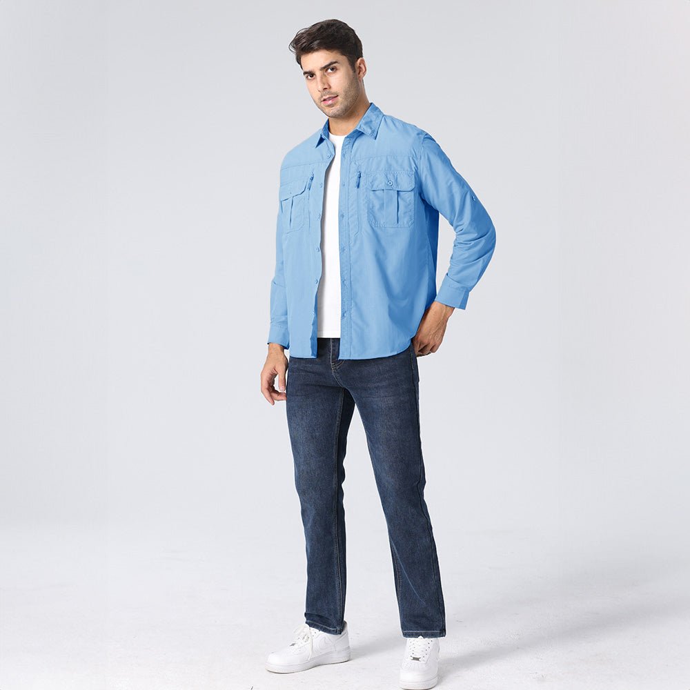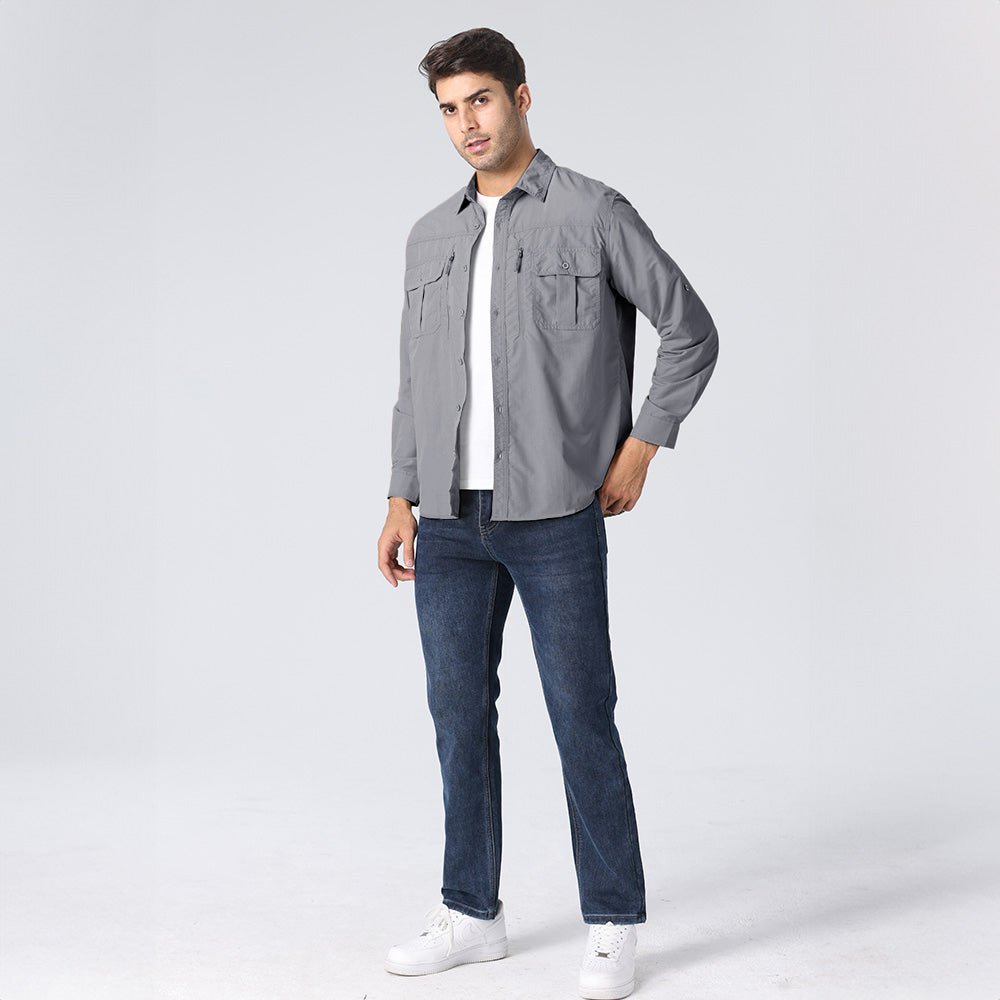 Convertible Design: Long sleeves feature hidden zippers that easily convert the shirt into short sleeves—ideal for changing weather or outdoor activities.