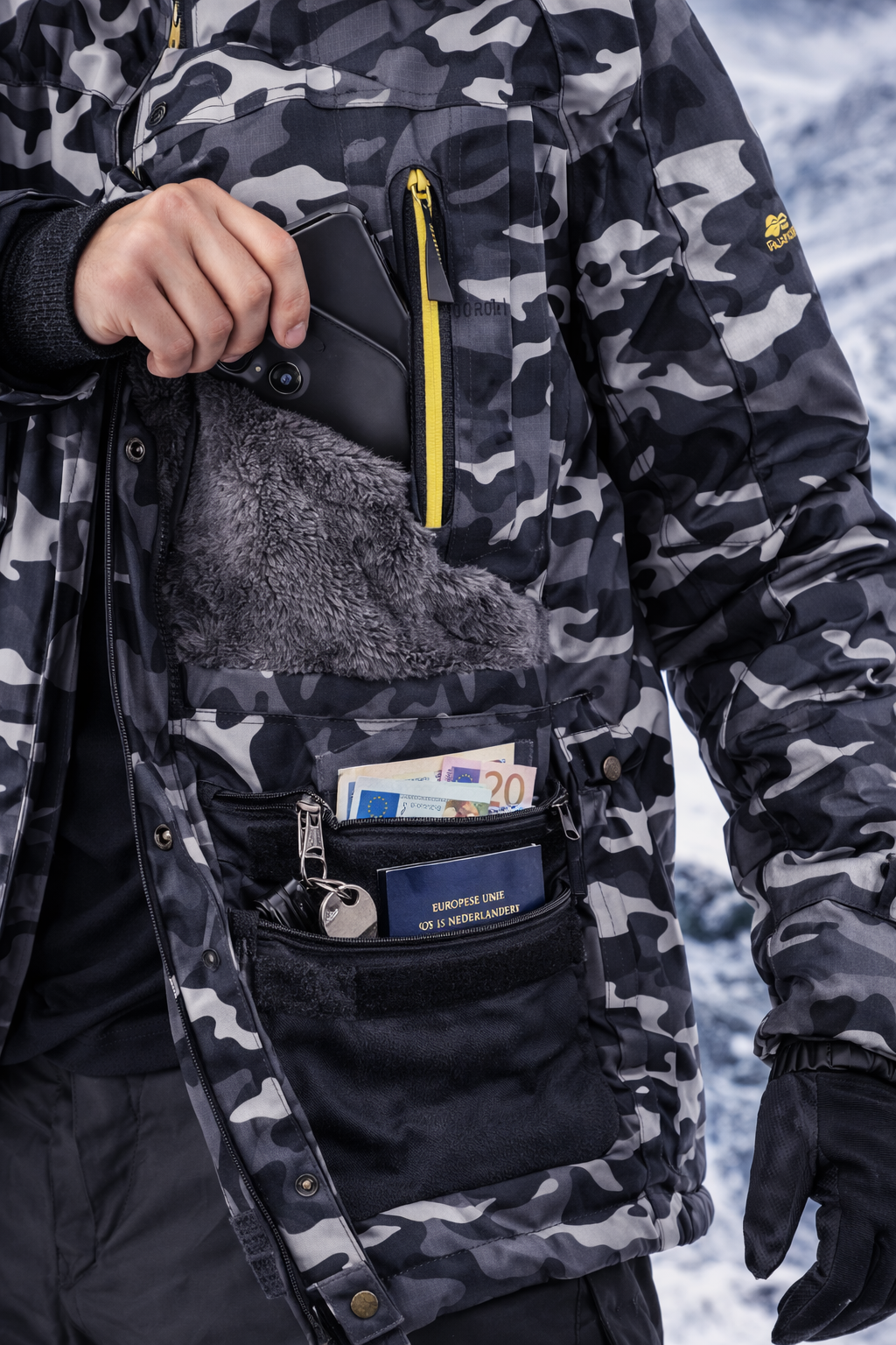 Enough space for your phone, wallet, documents, gloves, keys, and accessories, all protected from cold and water.